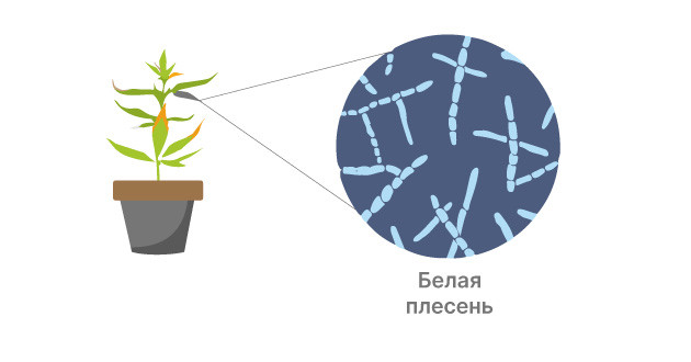 Видов плесени много, но конопля подвержена атаке в основном двух видов: красной и белой. Красная плесень появляется на поверхности субстрата, образуя сначала белый налет, а позже ярко-желтый и оранжевый. Белая плесень напоминает муку, образующуюся на листьях и соцветиях растений и вызывающую пожелтение и высыхание листвы. Эта плесень высасывает из листьев все питательные вещества и жизненную энергию.