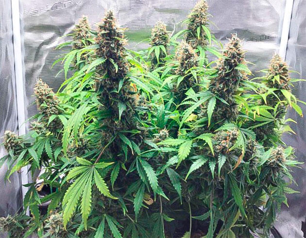 Поливаю раз в два дня то питательным раствором, то чистой водой. Схема рабочая, почва успевает просыхать, и куст выглядит абсолютно довольным. В целом неделя прошла спокойно. Никаких сюрпризов, растишка вытянулась, набрала силу и теперь заливает весь тент своим стойким запахом.