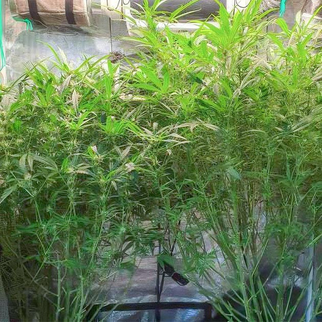 К шестой неделе кусты были очень, очень большие. Если честно, я не ожидал получить такие крупные растения. Ну а с листвой это вообще отдельная тема: она отрастает так быстро, что можно резать её хоть каждые три дня. Рост кустов был около 60 сантиметров, и они начали постепенно переходить в цветение, начали появляться стигмы и завязываться шишки.