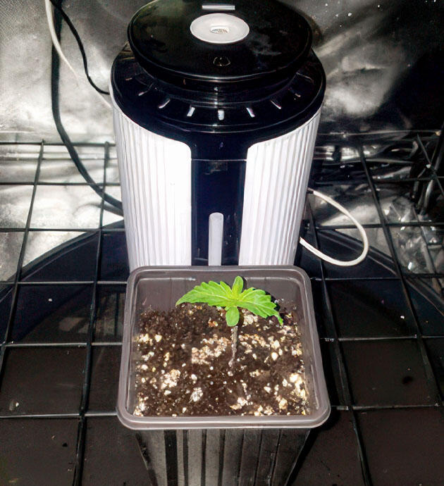 На второй неделе вегетации, когда корни заполнили стартовый объём, я произвел пересадку в более просторный горшок объёмом 2 литра. Это обеспечило растению дополнительное пространство для роста и снизило риск замедления развития из-за ограниченного корневого объема. Также я подключил автоматическую систему полива, чтобы поддерживать стабильное увлажнение субстрата без резких перепадов.