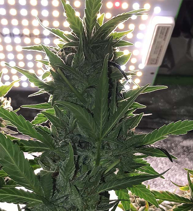 На верхней листве появились пятна, но это точно следствие светового ожога. Повреждены только те части растения, которые находятся ближе всего к борду. Главное, чтобы в шишках не начали формироваться «бананы» и куст не стал гермафродитом.