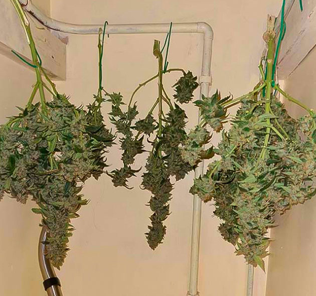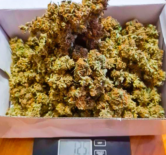 После харвеста я разделил куст на ветки, отманикюрил и развесил на сушку. На сырую вышло где-то 450 грамм, после шести дней сушки я получил 135 грамм первоклассного продукта (на весах 125, но это я снимал после того, как взял 10 грамм на пробу).