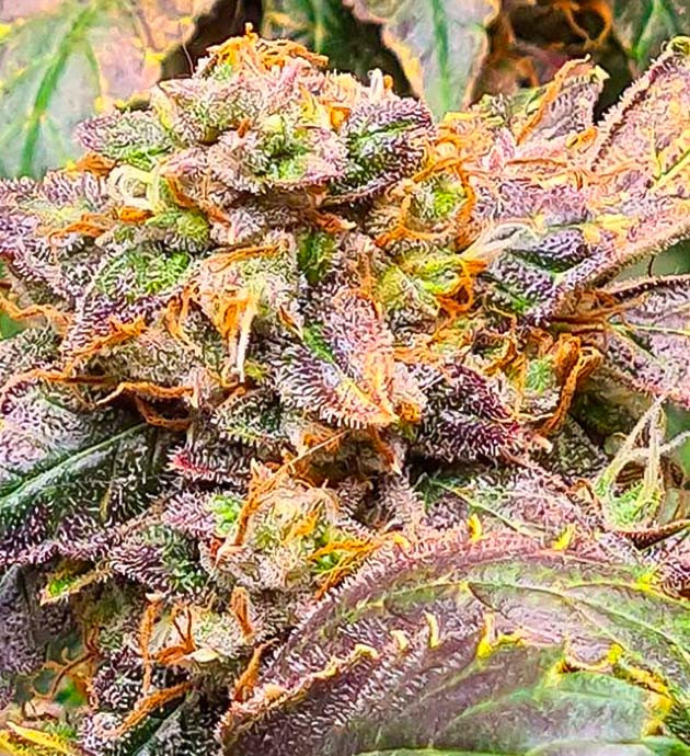На этой неделе появился отчетливый запах. Собственно, он и раньше был, но какой-то невнятный и, я бы сказал, фоновый, нейтрально-травянистый. Сейчас же аромат стал более ярким и обращает на себя внимание. Тон определенно цитрусовый, как и обещал производитель. Соцветия и сахарные листья покрываются сахаром трихом, а стигмы подсыхают и становятся ярко-оранжевыми, словно апельсиновая кожура. Кустик стал настоящим водохлебом. Лью ему по 2,5 литра за раз, и он выпивает все за два-три дня. Подкормка по прежней схеме.