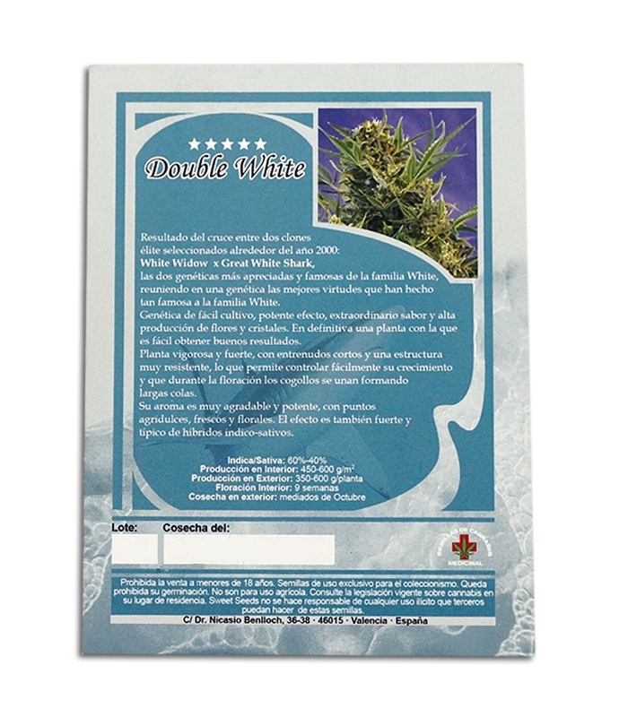 В 2000 году произошел брак элитных культур – White Widow и White Great Shark. Именно тогда в лабораторных условиях появился на белый свет энергичный и сильный Double White. Сорт отличается высокой производительностью, неприхотливостью и легкостью в выращивании.