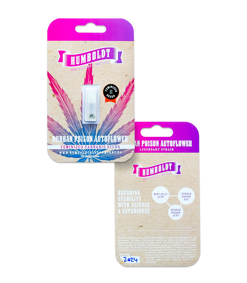 Первоначально сорт Durban Poison был выведен на основе южноафриканского сативного ландрейса еще в 70-х годах прошлого века. Растение моментально обрело мировую популярность, благодаря удивительной для данного вида конопли стойкости и мощному эйфорическому эффекту, способному наполнить позитивом даже самый непогожий день. Практически сразу после волны успеха каннабис был завезен на калифорнийские фермы, но только в 2021 году один из клонов оригинального «Дурбана» попал в руки специалистов из HSC. Оставить без внимания подобную находку мастера просто не могли и тут же решили приступить к разработке практичной автоцветущей вариации всеми любимого сорта Durban Poison.