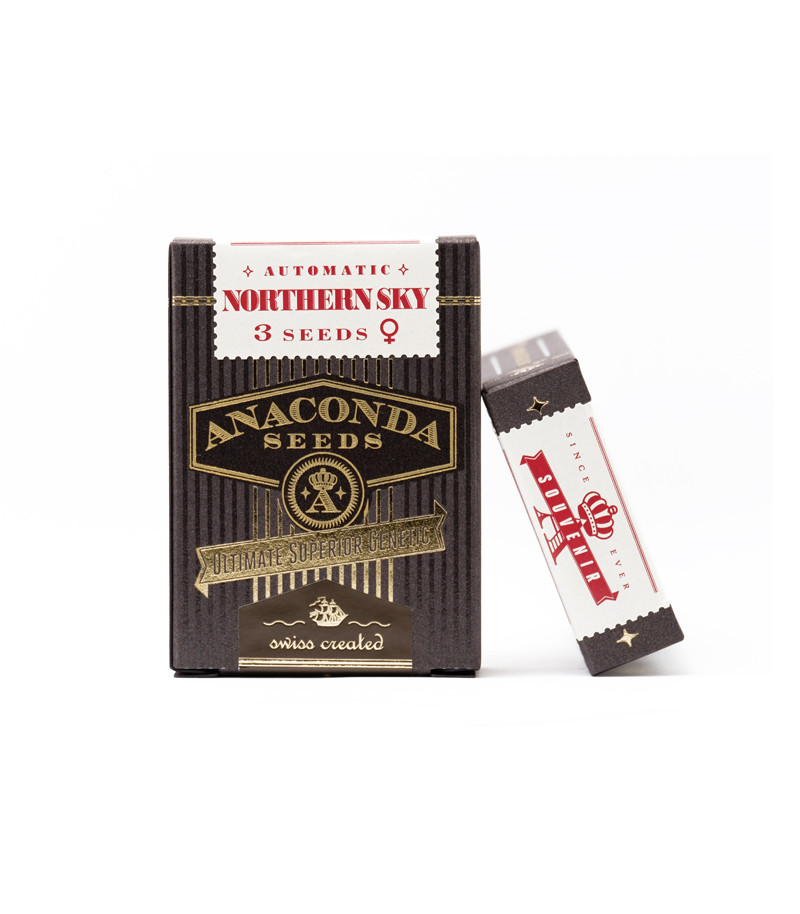 Сорт конопли Northern Sky Auto fem от Anaconda Seeds – один из самых производительных автоцветов в коллекции швейцарского сидбанка. Он приносит до 250 г шишек с куста, уровень содержания ТГК в которых достигает 22%. Его эффект – это идеальное переплетение физического стоуна и воодушевляющего хая.
