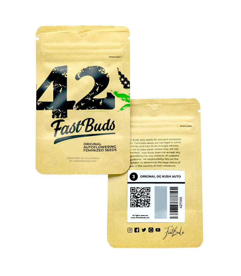 Автоцветущий сорт конопли Original Auto OG Kush fem – это прямой наследник легендарного калифорнийского «Куша» от американского сидбанка FastBuds. В рамках проекта Original бридеры скрестили первоклассную классическую генетику с отборным фенотипом и дикий рудералис.