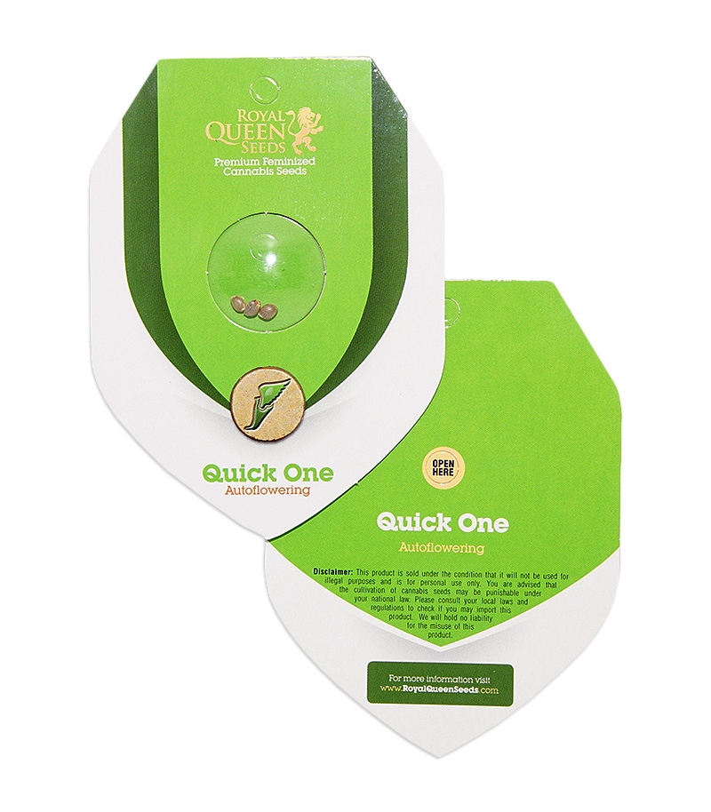 Сорт Quick One – является одним из первых автоцветов в мире - весь цикл занимает 9-10 недель. Сорт станет отличным выбором для обладателей компактных гроурумов, т.к. кусты обычно не выше 50-60см. Обладает свежим травяным ароматом и мягким вкусом.Воздействие физическое.