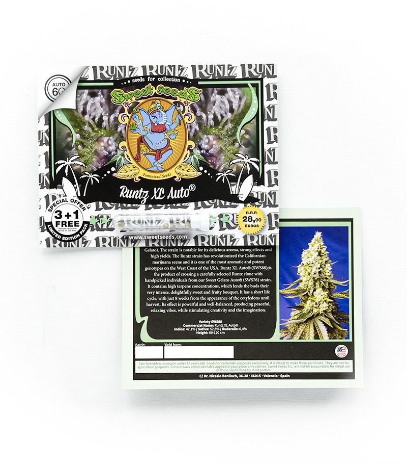 Сорт конопли Runtz XL Auto – это урожайный, быстрый и убойный автоцвет, который стал одним из самых популярных растений калифорнийского побережья. Его шишки отличаются высокой концентрацией терпенов и ТГК, что наделяет их насыщенными вкусоароматическими качествами и мощным многогранным воздействием.