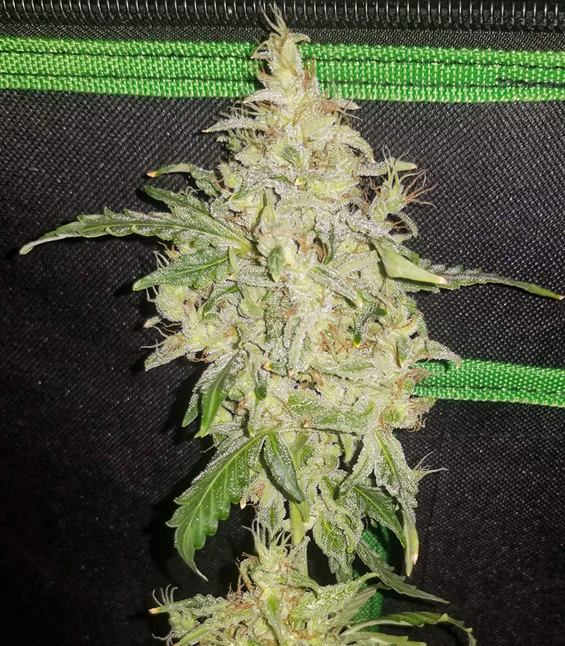 Структура у кустиков типично индичная, а от посадки семян в грунт до момента, когда соцветия созреют, проходит всего лишь 56 дней. Сложно поверить, но небольшие растеньица поистине щедры: с квадратного метра в индоре можно собрать 400-500 грамм плотных смолистых соцветий, а один аутдорный куст может принести от 50 до 130 грамм.