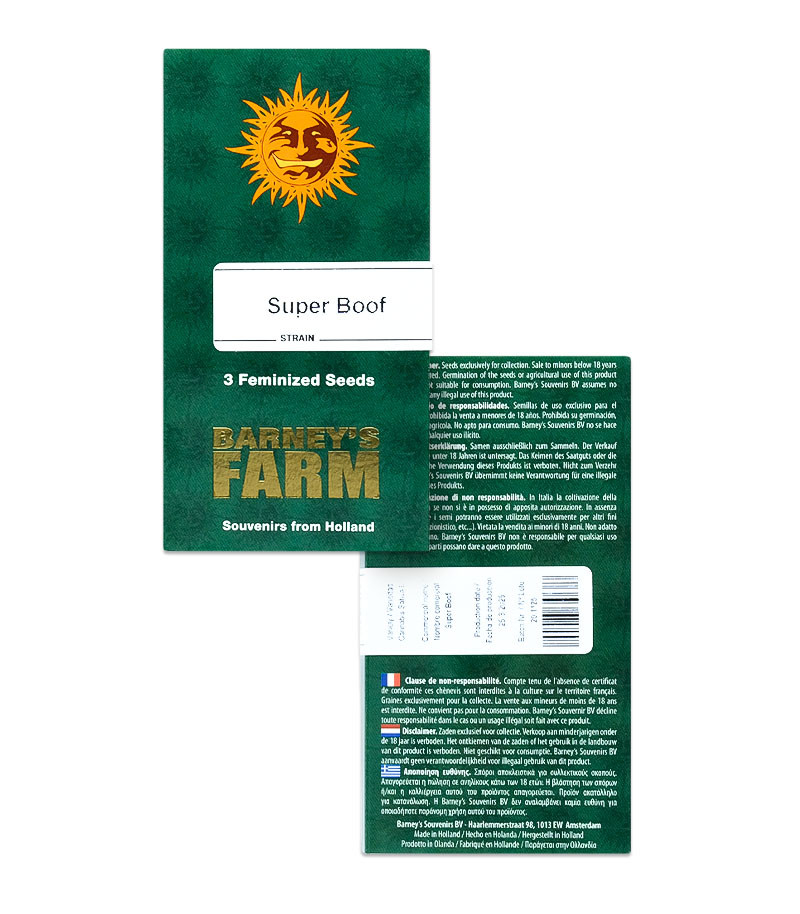 Каннабис Super Boof от голландской семенной компании Barney’s Farm – это продвинутый гибридный сорт с равными долями сативы и индики. В основе генетики лежат два вкуснейших растения Black Cherry Punch и Tropicana Cookies. Благодаря им новинка получила собирательный терпеновый образ, состоящий из ягод, тропических фруктов и потрясающей кондитерской нотки. В то же время начинка шишек включает до 32 % ТГК. Она открывает перед пользователем многомерный опыт телесных и церебральных ощущений длиной в несколько часов.