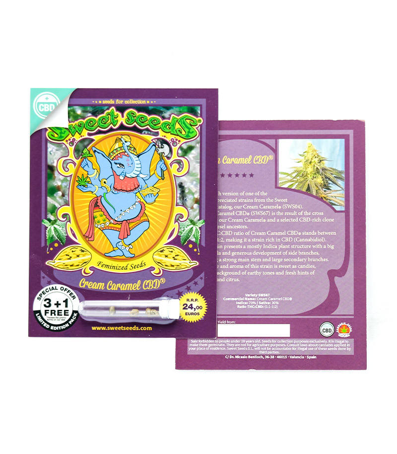 Семенной банк из Испании предложил гроверам мира еще одну богатую каннабидиолом новинку – сорт Cream Caramel CBD. Для этого бридеры скрестили свою сладкую и популярную Cream Caramel и богатую КБД версию одного из семейства Дизелей. У новой Карамели КБД 9-17% и ТГК 7-15%.
