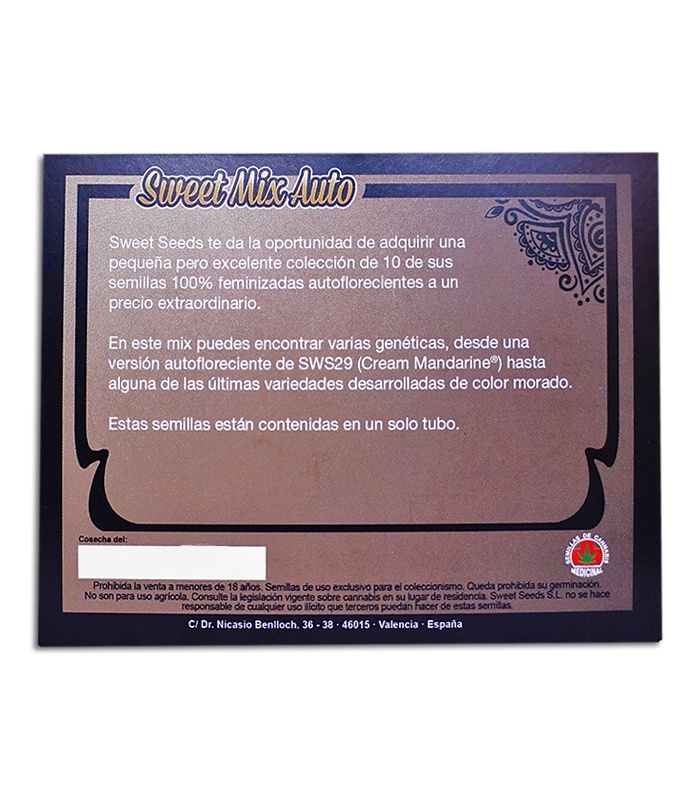 Коллекционные наборы Sweet Seeds всегда отличались своим качеством, как и каждый из отдельно взятых сортов сид-банка. Вместе с набором Sweet Mix Auto у гроверов появилась возможность приобрести сразу несколько сортов марихуаны. Всего в коробке можно найти 10 автоцветущих фемок. В коллекционном наборе собрались удивительные сорта!